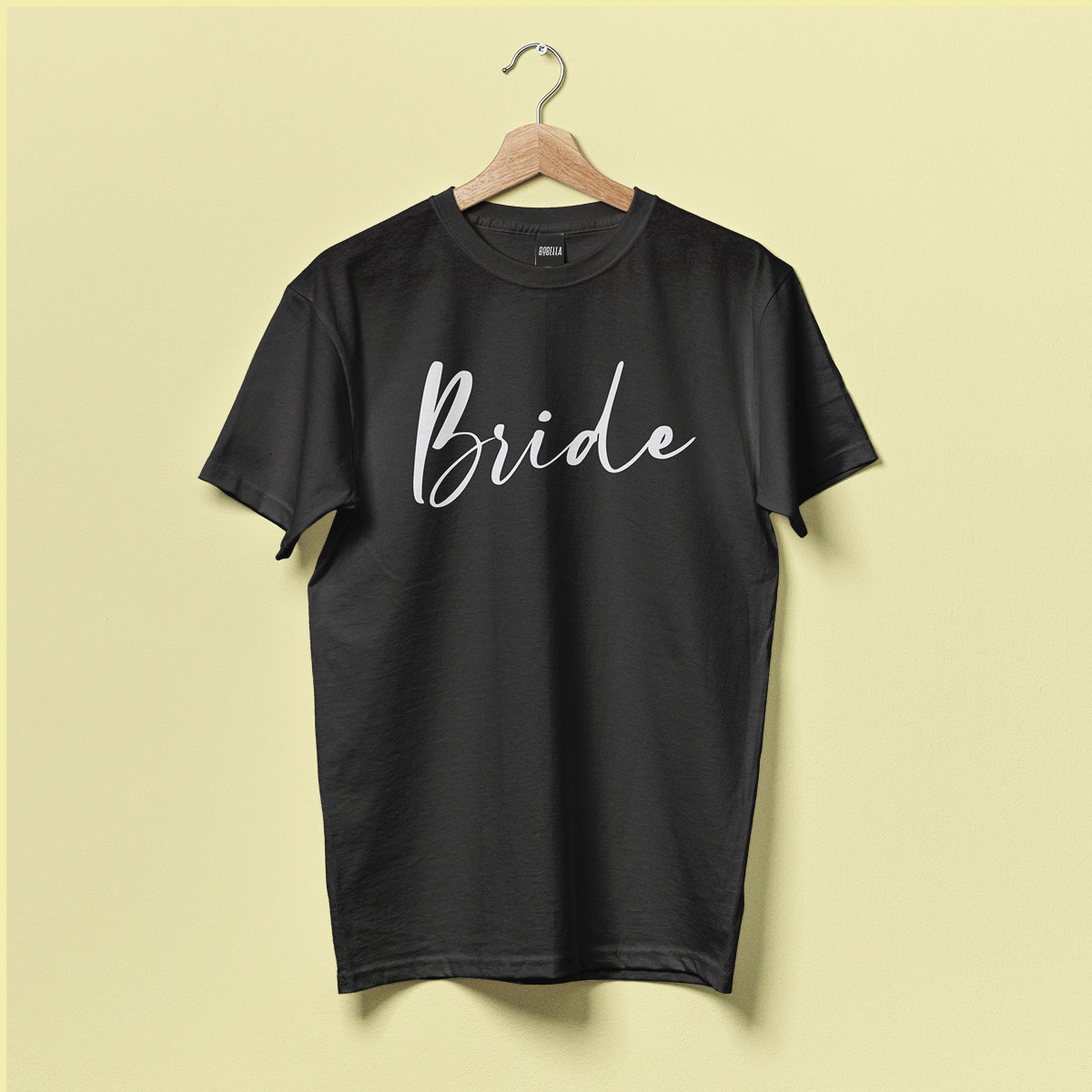 A complete set ready for your party, choose between Bride, Bridesmaid, Maid of Honour, Mother of  The Bride and Mother-in-Law…….. everyone covered. All of our t-shirts have a crew neck and is printed with a select text colour of your choice! They are soft and comfy with a fun design to match your party! Bridal party t-shirts make the perfect gift for your Bride/bridesmaid/party guest. Travel/party in style, matching or with a mix ‘n’ match, the choice is yours.