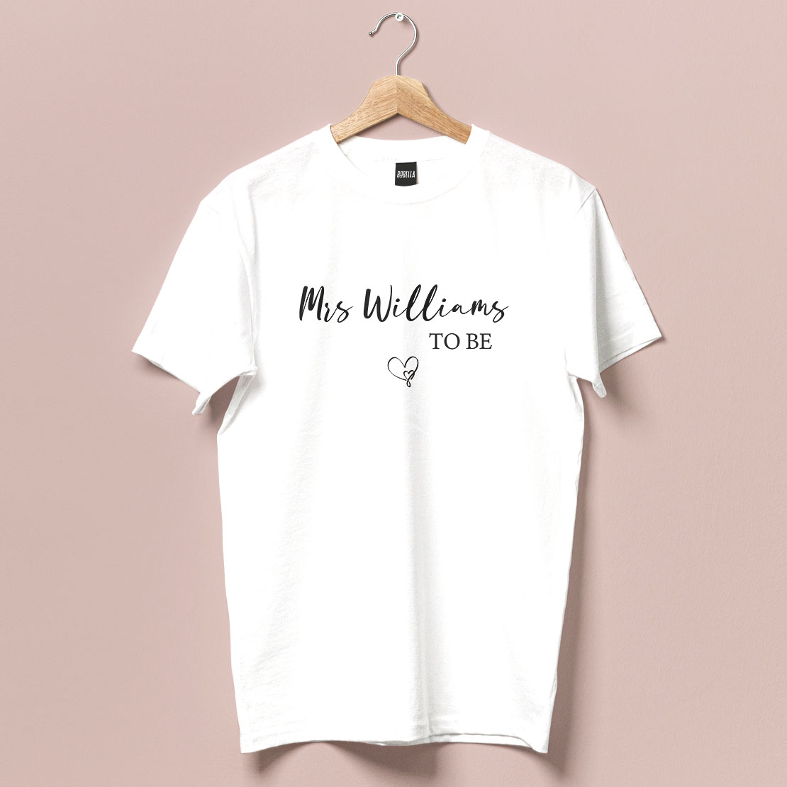 Brides to be love this t-shirt for its clean and pretty look. Choose your t-shirt colour, add your future surname and you are set!