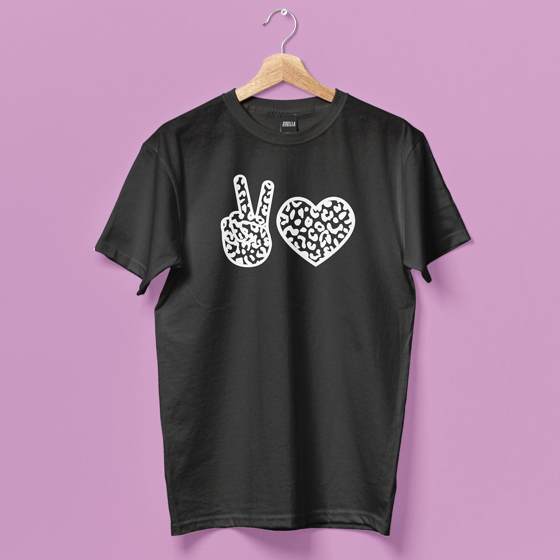 Peace and Love, baby. All of our t-shirts have a crew neck and is printed with a select text colour of your choice! They are soft and comfy with a fun design to match your party! These t-shirts make the perfect gift for any of your friends or family.